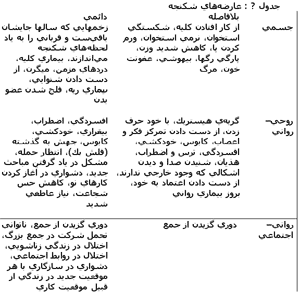 جدول ۱ : عارضههاي شكنجه