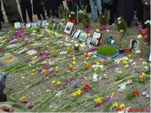 روز جمعه به مناسبت نوروز، خانواده های جانباختگان، به همراه جمع کثيری از مردم، در گورستان خاوارن گرد هم آمدند. حضور گسترده مردم، بخصوص جوانان، با دسته های گل، جلوه زيبای به اين گلستان داده بود. در اين مراسم تقريبا هيچ مامورحکومتی حضور نداشت و مراسم به آرامی ادامه يافت، شکوه و عظمت آن بقدری بود که همه را تحت تاثير قرار می داد ...