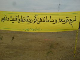 خبر ویران کردن خاوران را که شنیدیم از شهرستان به تهران آمدیم. به خاوران رفتیم. در بازار گل به چند تن از خانواده ها بر خوردم ، با هم گل و شن رنگی خریدیم و رفتیم. پلاکارد پارچه ای زردی که روی آن نو شته بود "طرح ساماندهی گورستانهای اقلیتهای مذ هبی" همچنان سر جایش بود، در حالی که همه می دانند عزیزان ما اقلیت مذهبی نبودند و این را